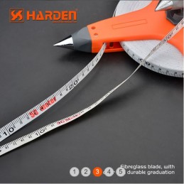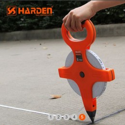 Langes Bandmaß mit 30 m Bandlänge, Kunststoffhülle, mit integriertem Tragegriff zum besseren Halten des Werkzeugs.