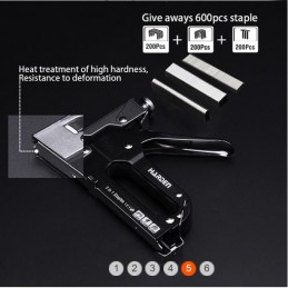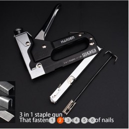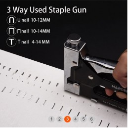 Grapadora clavadora manual con perilla de ajuste. 3 tipos de uso, grapas en forma de U de 10-12 mm, grapas en forma de N de 10-14 mm, grapas en forma de T de 4 a 14 mm.