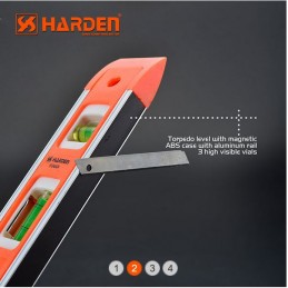 Nivel de burbuja TORPEDO de ABS y aluminio, longitud 225 mm, magnético, 3 burbujas de visualización.