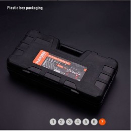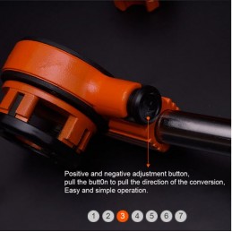 Caja de 6 troqueles 1/4", 3/8", 1/2", 3/4", 1", 1-1/4", 1 trinquete con botón de ajuste positivo/negativo, 2 extensiones.