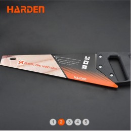 Sierra para PVC en acero 1065 Mn tratado, dientes templados con muy buen filo, mango de plástico, longitud 350 mm.