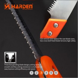 Sega per tubi dell'acqua in plastica da 350 mm, realizzata in acciaio 1065 Mn, trattata termicamente, temprata e affilata, denti abrasivi su entrambi i lati, affilata e veloce, impugnatura in plastica.