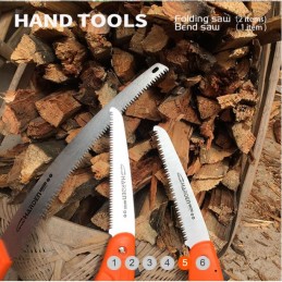 Seghetto pieghevole per legno verde da 180 mm, realizzato in acciaio 1065 Mn, denti rettificati su 3 lati, trattato termicamente, lama temprata e affilata, affilata e rimuove rapidamente i trucioli, impugnatura pieghevole e morbida in TPR.