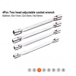 Cassetta degli attrezzi con chiavi e bussole (1/2" - 1/4") contenente 77 pezzi come 9 bussole esagonali da 1/4", 1 cricchetto a flipper da 1/4", 1 giunto universale da 1/4", 1 barra a T scorrevole da 1/4", 1 prolunga da 1/4", 1 adattatore per punte da 1/4", 13 bussole esagonali da 1/2", 1 bussola per candele, 1 cricchetto a flipper da 1/2", 1 giunto universale da 1/2", 2 prolunghe da 1/2", 22 punte, 7 chiavi esagonali a testa piatta, 11 chiavi combinate, 4 chiavi a bussola regolabili a due teste, 1 valigetta.