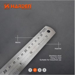 Liniaal van roestvrij staal, lengte 300 mm, metrische en imperiale maatvoering.