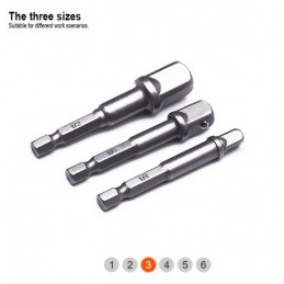 Set van 3 stuks Hex-adapter voor doppen 1/4", 3/8", 1/2".