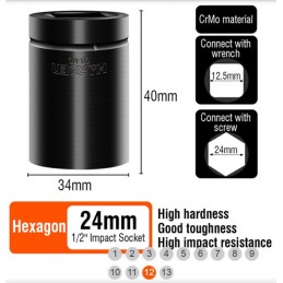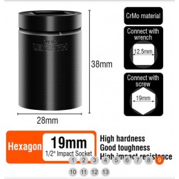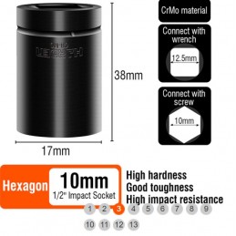 Caixa de soquetes de impacto profundo, 1/2", 10 peças