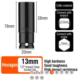 Caixa de soquetes de impacto, 1/2", 10 peças