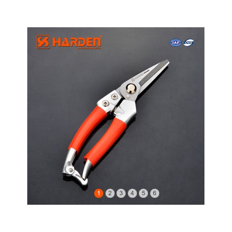 Tesoura de poda de frutas com lâminas em aço inoxidável, cabos em liga de zinco e revestimento em PVC.