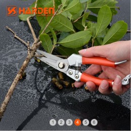 Mini tesoura de poda bypass, tamanho 15", faixa de corte de até 25 mm de madeira.