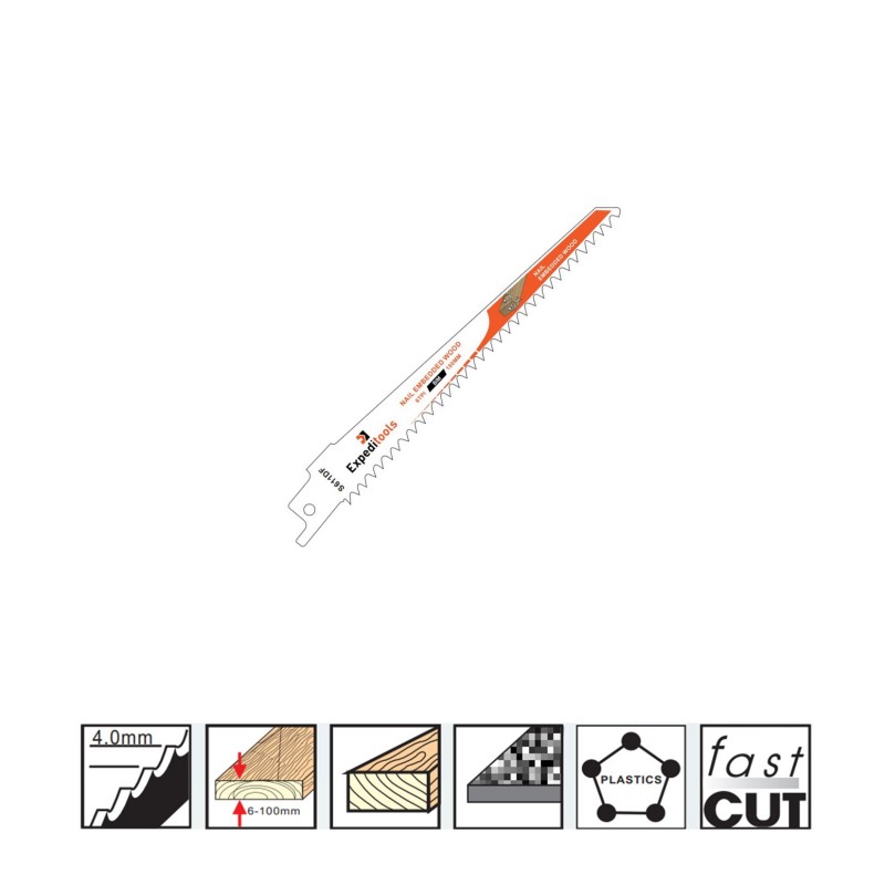 Lâmina de serra alternativa S611DF para madeira e metal, comprimento 150 mm, comprimento útil 128 mm, TPI 6T, largura 18 mm, espessura 1 mm